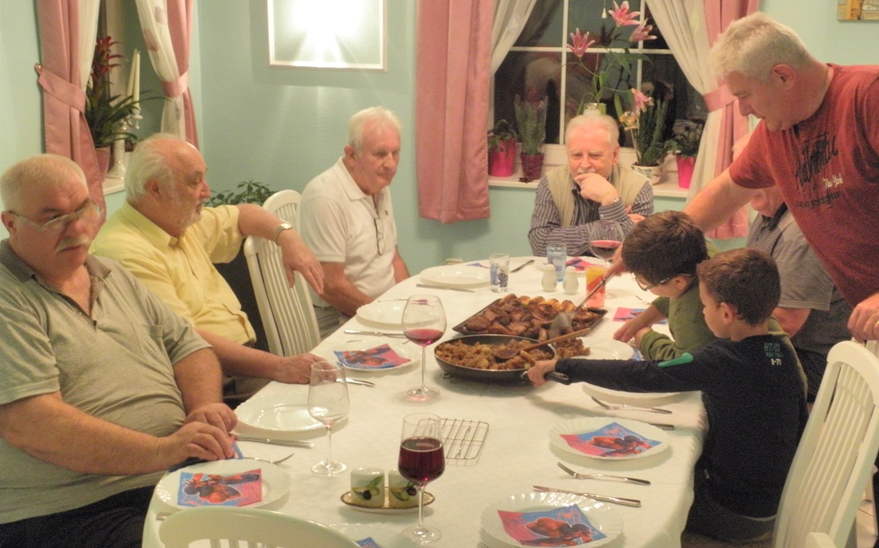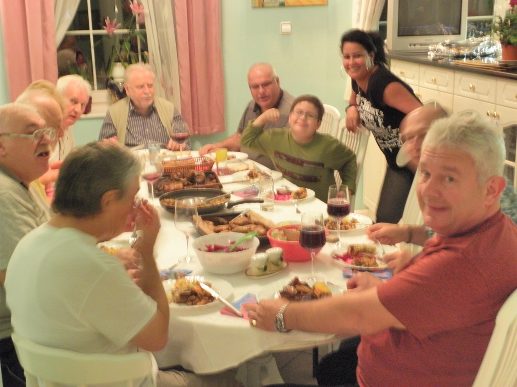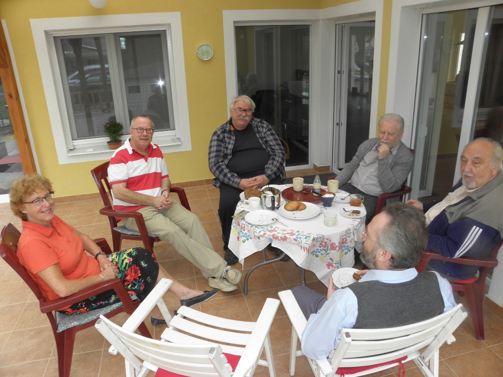 A remek hangulatú, kellemesen eltöltött két napon mindannyian kíválóan éreztük magunkat, ahogy a képeken is tükröződik. A rendezvény eredményeként a hozott gazdag csereanyagokból a résztvevők gyűjteményei is szépen gyarapodtak. A kétnapos találkozó fénypontja azonban az volt, hogy - a házigazdánk kedves felesége által készített szombat esti közös vacsora során - körünkben megjelent házigazdánk édesapja és a Mafitt alapító tagja, Király Tibor senior. Az igen hangulatos, családias környezetben tartalmas előadást tartott nekünk a nyugatmagyarországi halálfejes felülnyomásról, ami filatéliai ismereteinket is tovább gazdagította. Az előadásról három rövid filmfelvétel is készült, ezek közül egyet, melyben a hazai perfingyűjtés hőskoráról is szó esik, - tárhelykorlátok miatt sajnos csak egy hétig - itt letölthetővé (avi-fájl, kb. 600 Mb, 2014. okt. 11-ig) tudunk tenni. Köszönjük a nagyszerű szervezést, valamint a törődést és vendéglátást házigazdánknak és kedves családjának! (2014.10.03) |